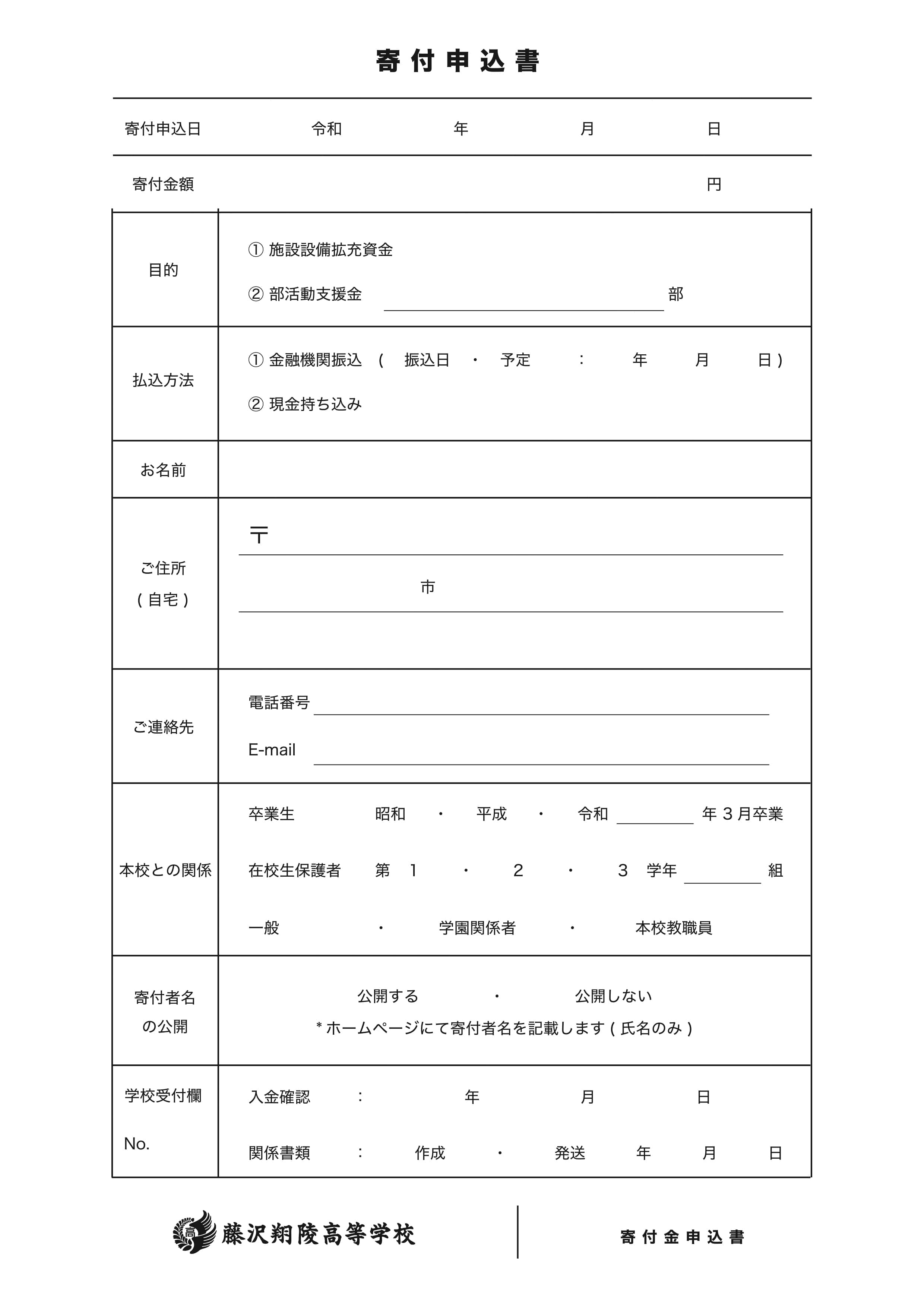 藤沢翔陵高等学校 寄付金担当
